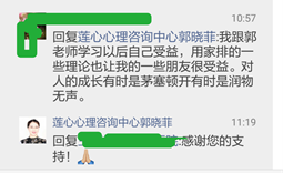 我,莲心心理咨询中心、河南莲心心理咨询有限公司创办人郭晓菲,从2006年开始从事心理学方面知识的探索。我曾在全国各地学习各种心理咨询技术,最后我选择深入学习研究来自德国的“家庭系统排列”技术。该技术的神奇之处是:2个小时的个案就可能基本解决来访者的心理问题,包括抑郁症。经过不断的努力和长期深入地学习,2012年我考取了国家人社部认证的“家庭系统排列导师”证书,获得了举办家庭系统排列工作坊或沙龙的资格。根据实际环境的需要,2013年、2014年我又分别发现了属于我自己的“人偶家排”和“网络家排”。